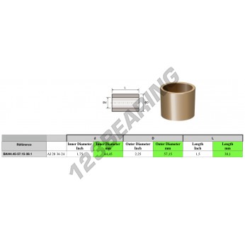 Das Bronze Gleitlager bekannt als BAI44.45-57.15-38.1 Generisches, hat einen Innendurchmesser von 44.45 mm, einen Außendurchmesser von 57.15 mm und eine Länge von 38.1 mm. Sie wird aus hergestellt.