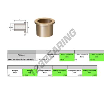 Das Bronze Gleitlager Mit Bund bekannt als BFAI7.938-12.7-15.875-1.588-12.7 Generisches, hat einen Innendurchmesser von 7.938 mm, einen Außendurchmesser von 12.7 mm und eine Länge von 12.7 mm. Sie wird aus hergestellt.
