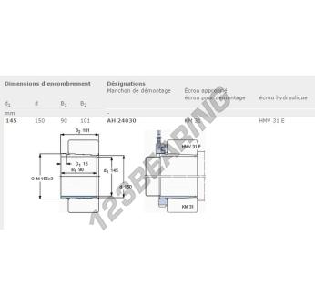 Das Spannhülsen, bekannt als AH24030-SKF SKF, hat einen Innendurchmesser von 145 mm, einen Außendurchmesser von 150 mm und eine Dicke von 90 mm.