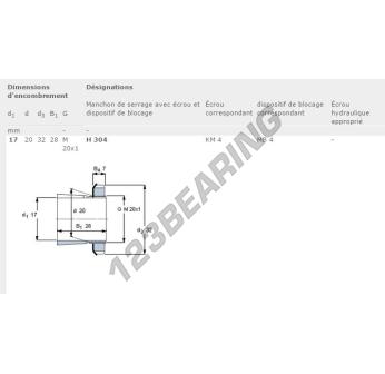 Das Spannhülsen, bekannt als H304-SKF SKF, hat einen Innendurchmesser von 17 mm, einen Außendurchmesser von 32 mm und eine Dicke von 28 mm.