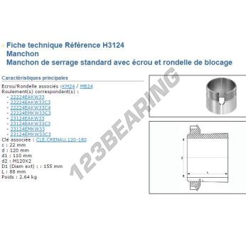 Das Spannhülsen, bekannt als H3124-SNR SNR, hat einen Innendurchmesser von 110 mm, einen Außendurchmesser von 155 mm und eine Dicke von 120 mm.