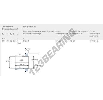 Das Spannhülsen, bekannt als H314-SKF SKF, hat einen Innendurchmesser von 60 mm, einen Außendurchmesser von 92 mm und eine Dicke von 52 mm.