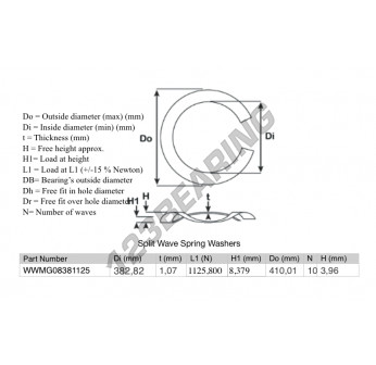 Das Geschlitzte Wellfederscheibe mit der Referenz SWSW-410-382.82-1.07-10 hat einen Innendurchmesser von 382.82 mm und eine Dicke von 1.07 mm. Er ist aus dem Material STAHL gefertigt.