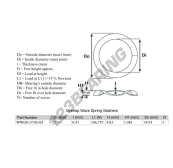 Das Spiral Wellfederscheibe mit der Referenz OWSW-34.930-27.690-0.410-3 hat einen Innendurchmesser von 27.69 mm und eine Dicke von 0.41 mm. Er ist aus dem Material STAHL gefertigt.