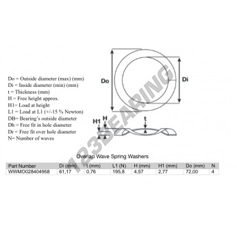 Das Spiral Wellfederscheibe mit der Referenz OWSW-72-61.17-0.76-4 hat einen Innendurchmesser von 61.17 mm und eine Dicke von 0.76 mm. Er ist aus dem Material STAHL gefertigt.